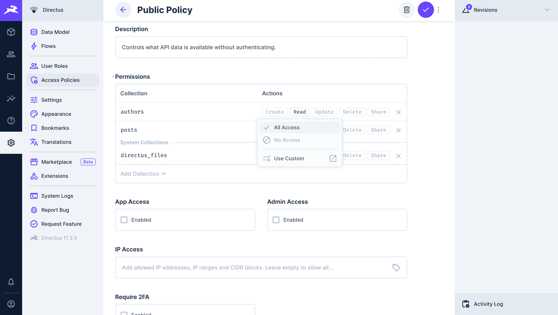 Configure API Read Permissions in Directus CMS